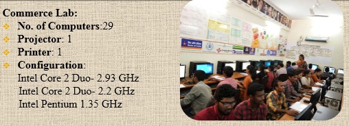 The Commerce Lab is undoubtedly first of its kind and pioneering venture on the part of the college, won the encomiums of Department of Commerce, Osmania University and others concerned with commerce education. The Vice-Chancellor of O.U. inaugurated the Lab and lauded the efforts taken up by the college. The Commerce lab is a new concept, wherein students practice their theoretical knowledge gained in the business profitably and understand the practical difficulties. Commerce lab was inaugurated with 29 Computers.