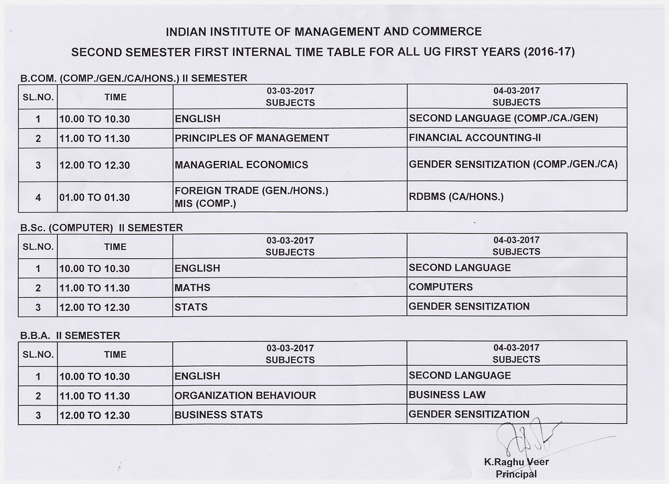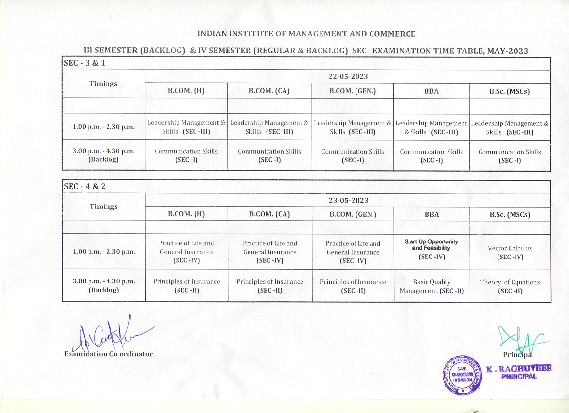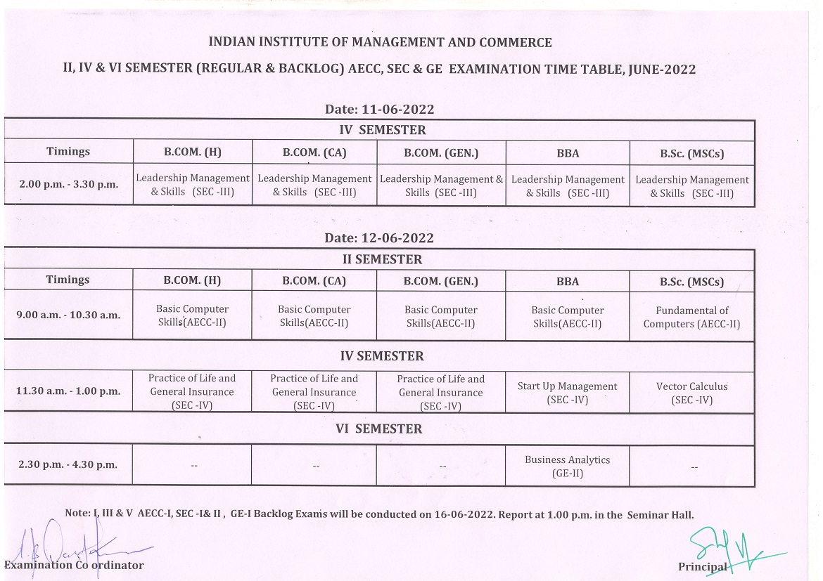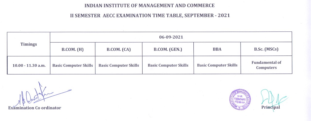 B.Com. & B.Sc. III SEM Internal Exam Time Table