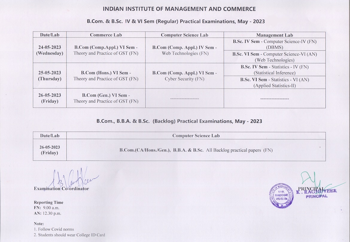 UG IV & VI Sem. Practical Examinations (24-May-2023 to 26-May-2023)
