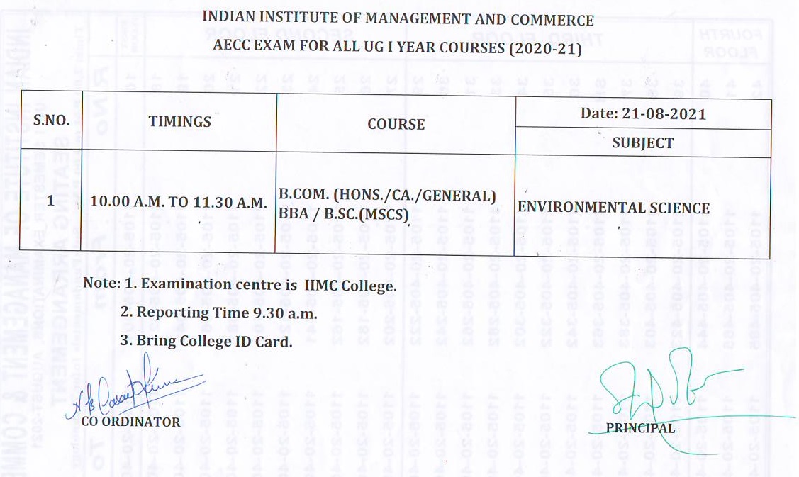 UG I SEM EXAMINATION Timetable-Aug 2021