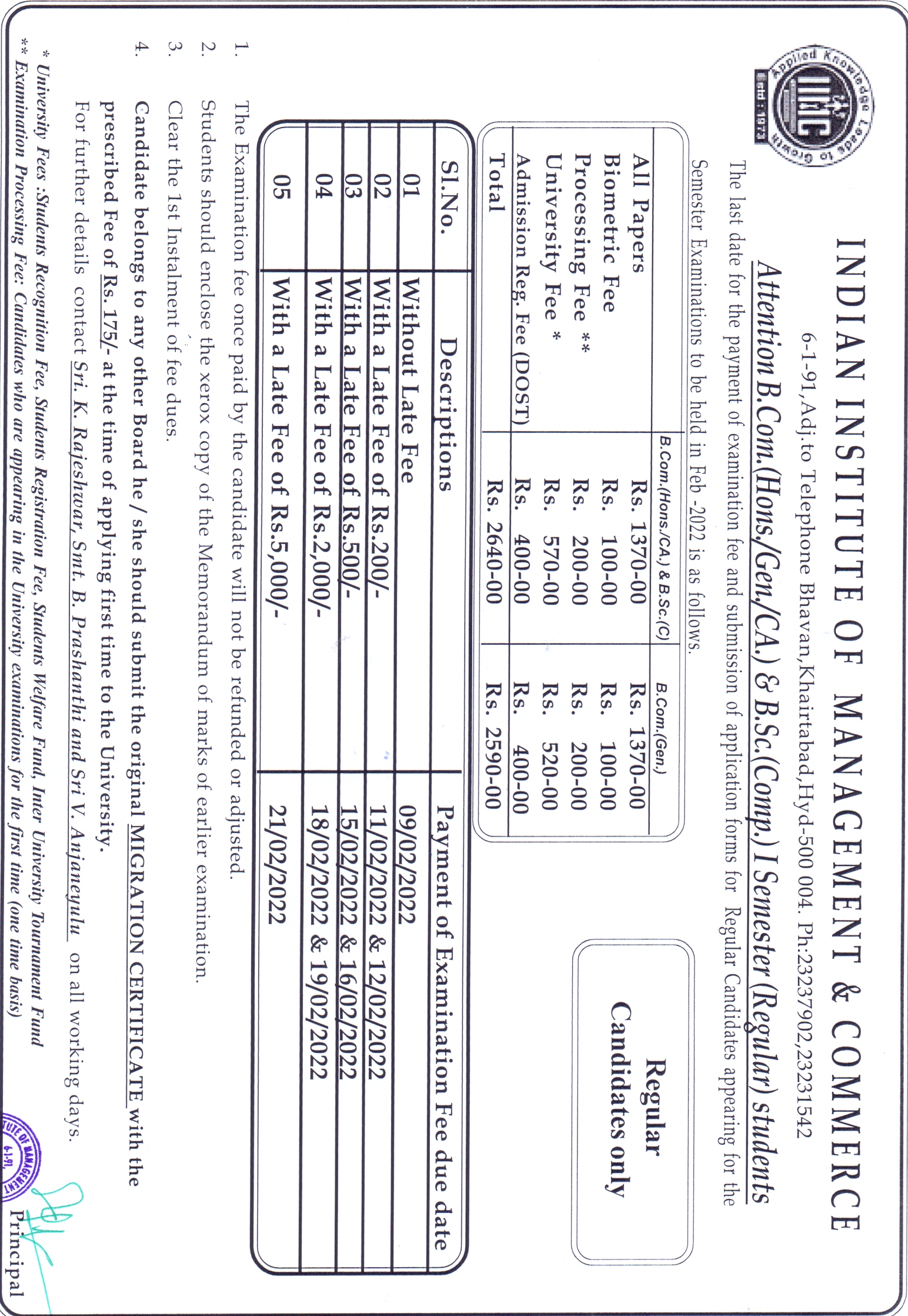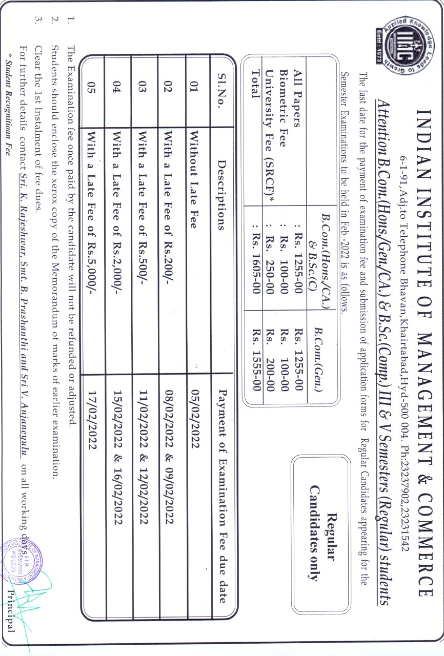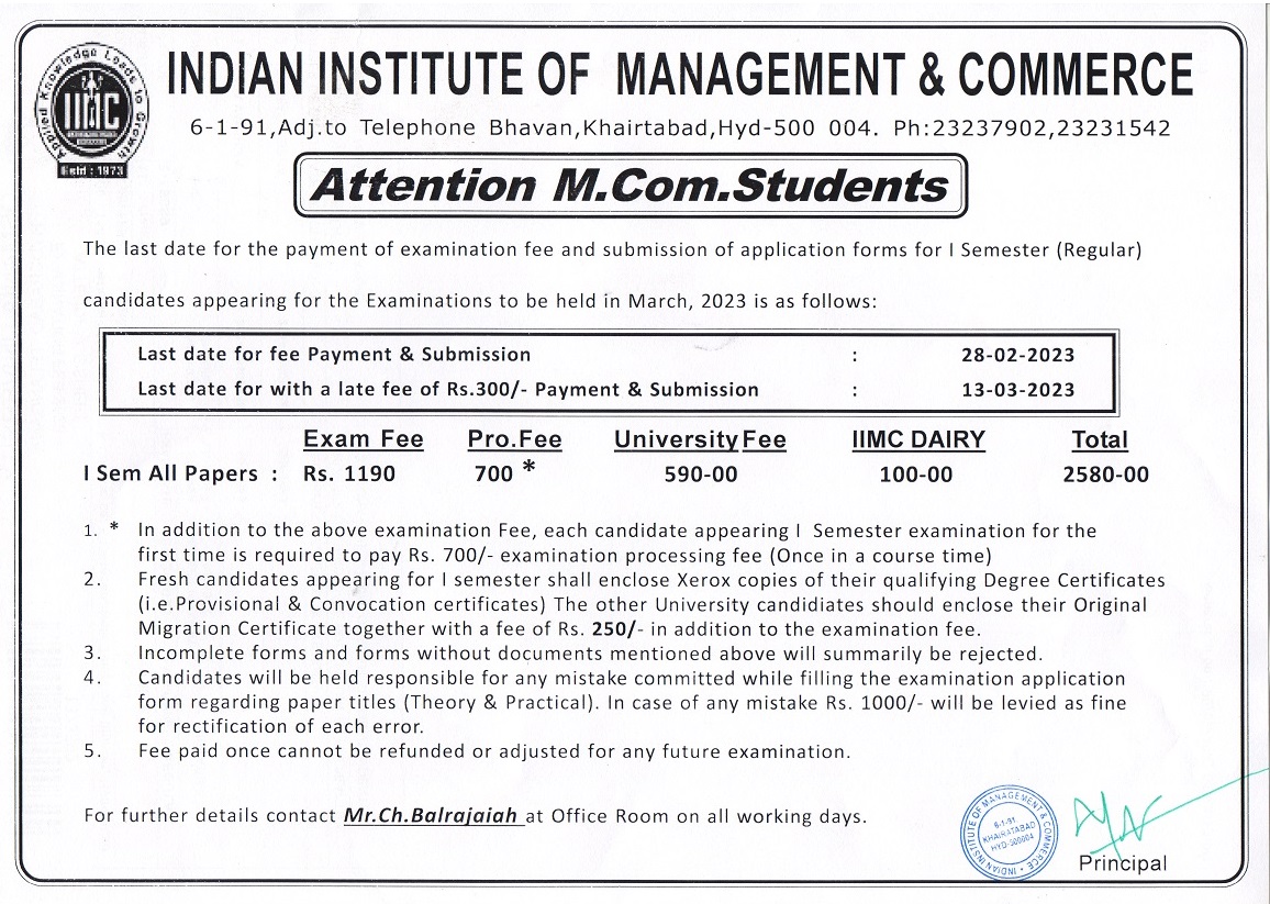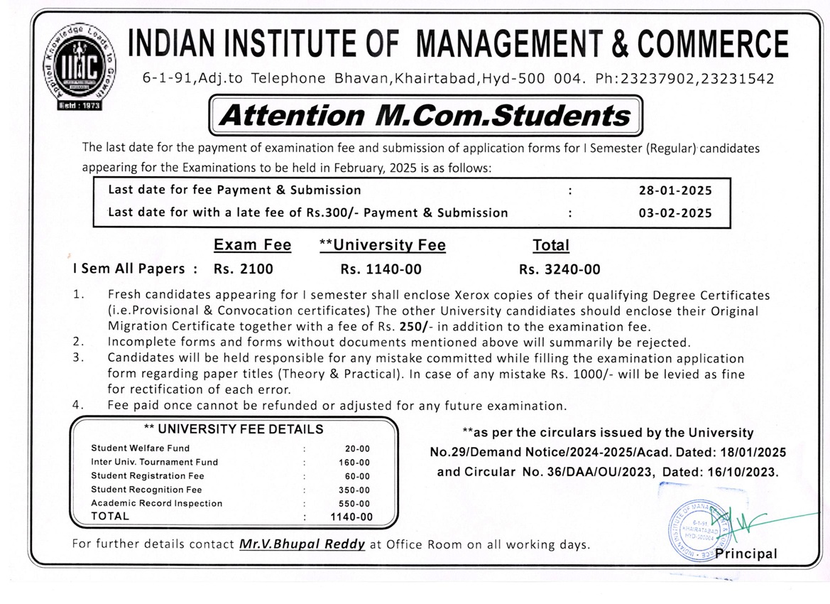 M.Com Examination Fee(Regular & Backlog) Notice (Last Date:20-Aug-2024)
