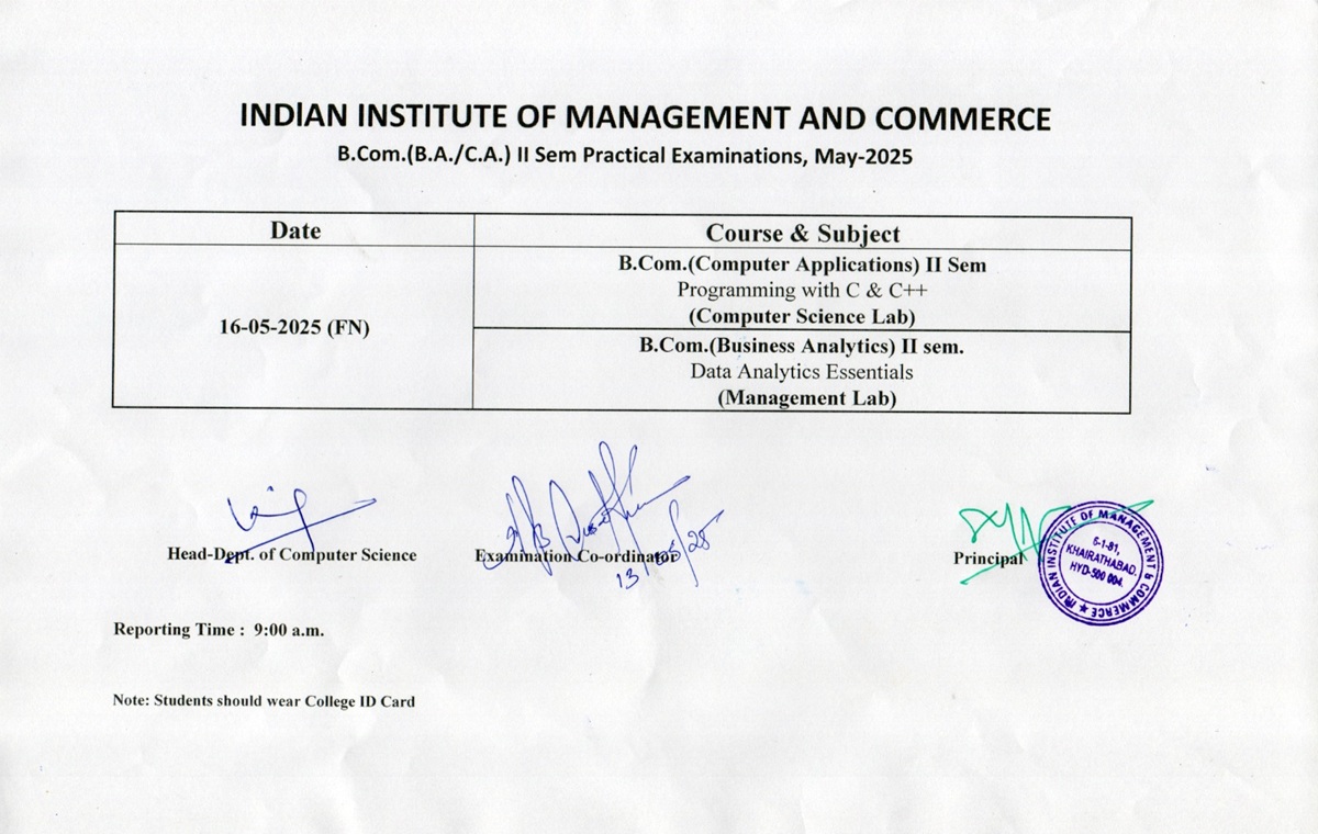 B.Com. II Sem Practical Timetable (16-May-2025)