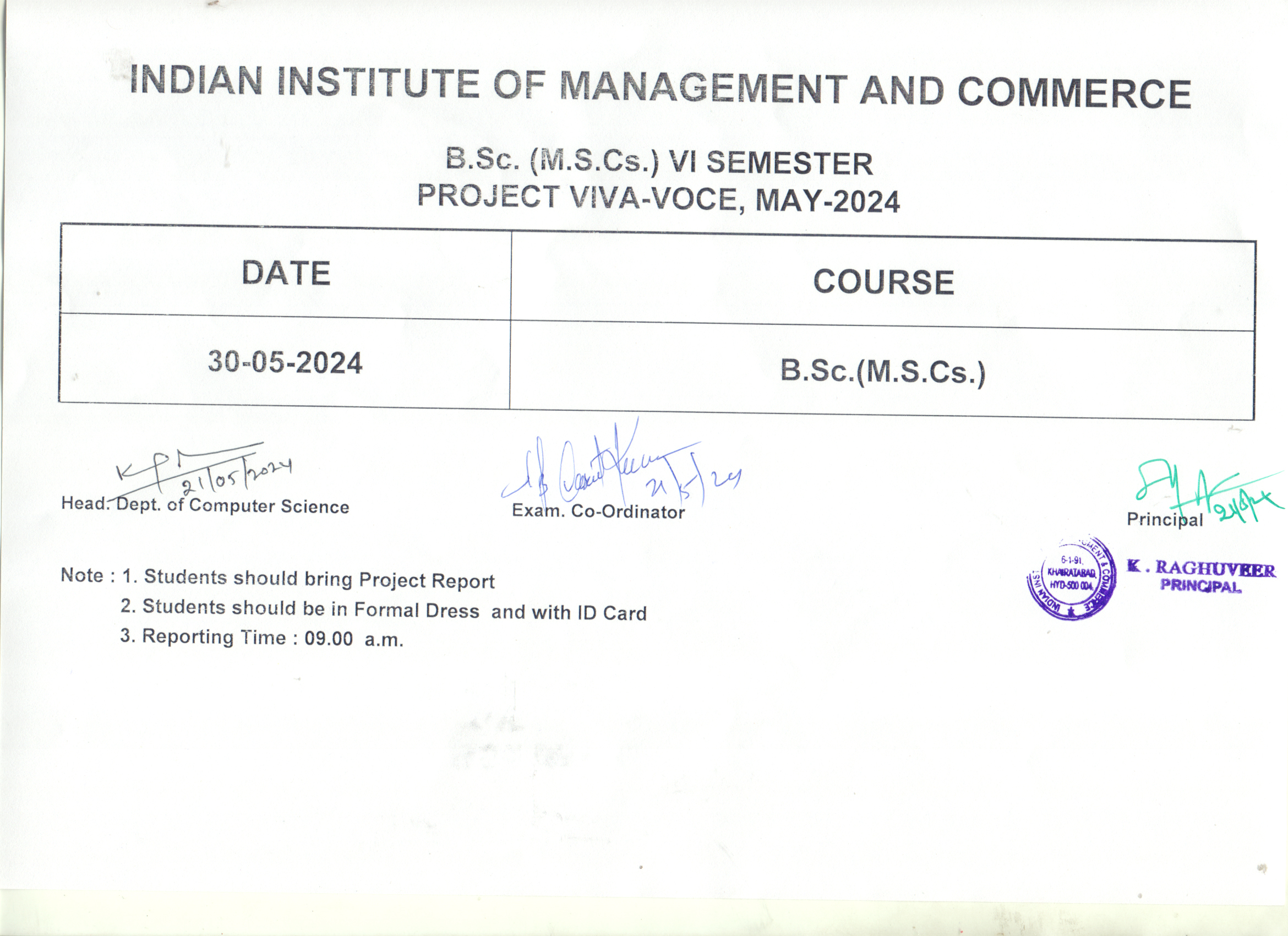 B.Sc. Project Viva-Voce Timetable(30-May-2024)