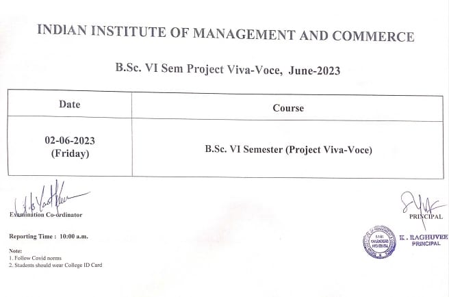 B.Com.(Hons/Gen/C.A.) Project Viva Timetable (29-May-2023 & 30-May-2023)