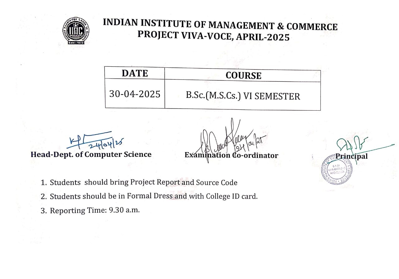 B.Com. VI Sem.-Project Viva-Voce Timetable(24-Apr-2025 & 25-Apr-2025)