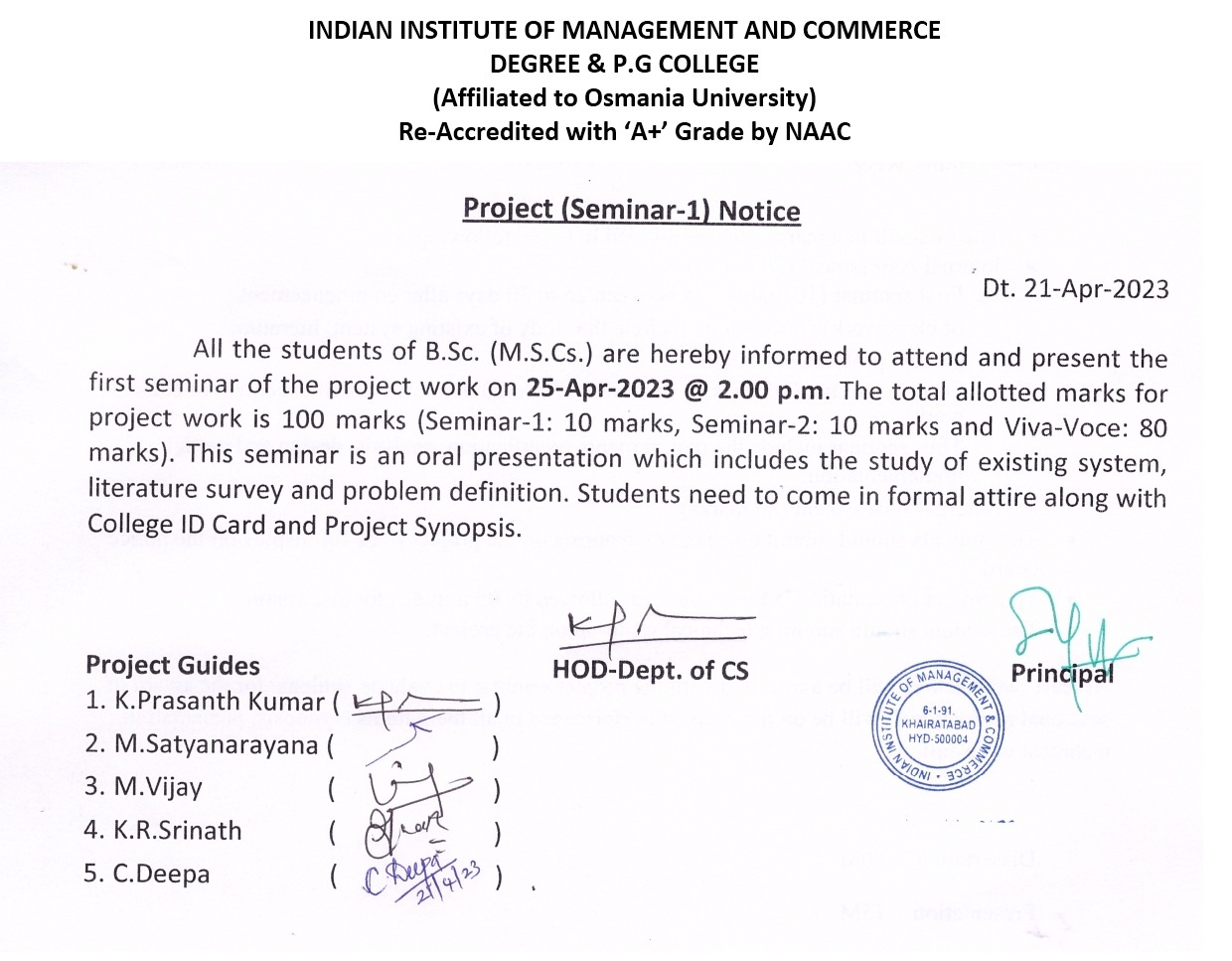 B.Sc.VI Sem-First Seminar Notice(25-Apr-2023)
