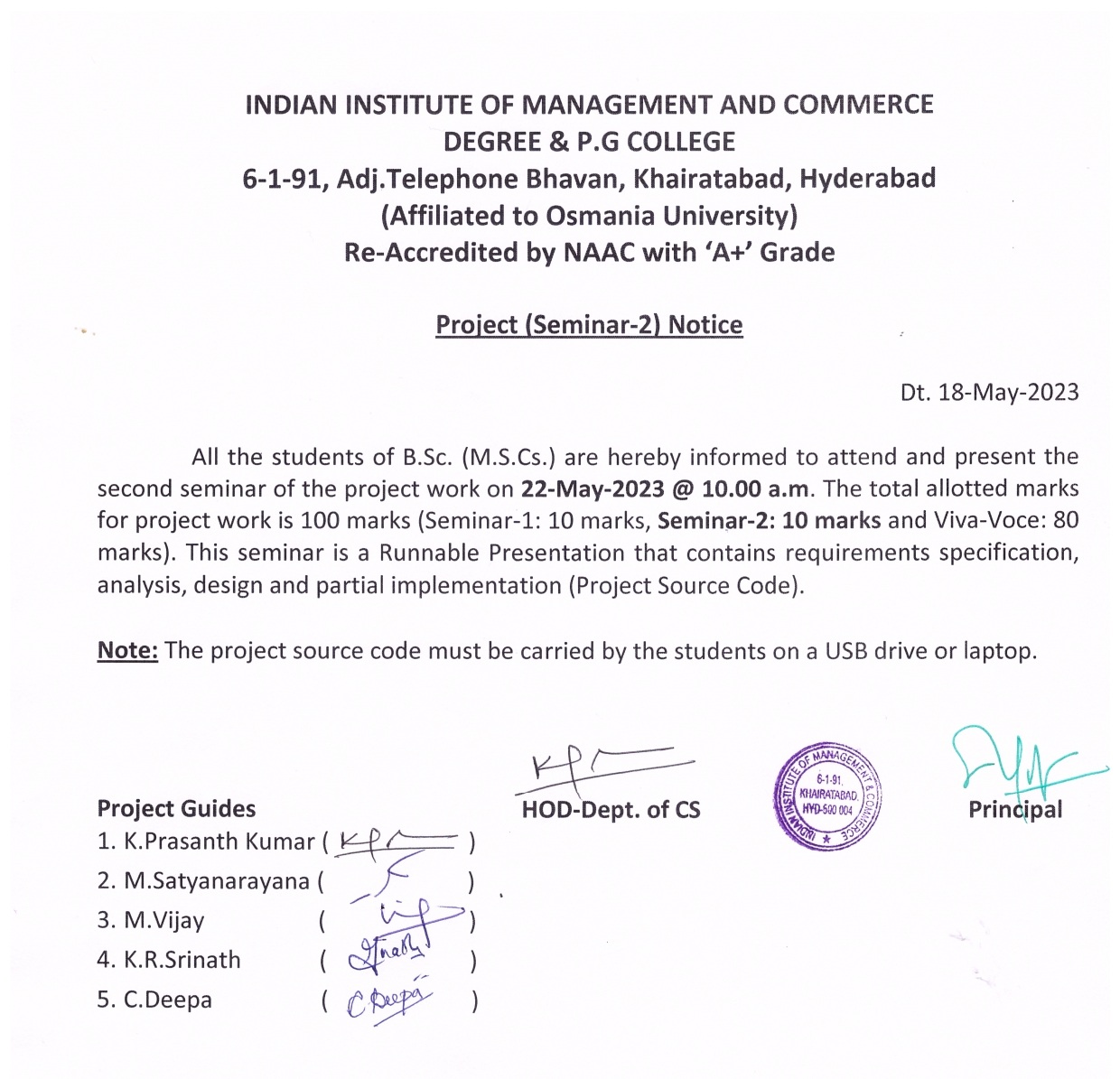 B.Sc.VI Sem-Second Seminar Notice(22-May-2023)