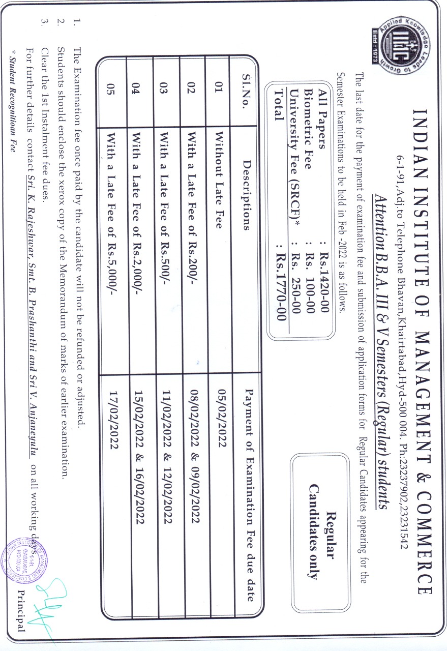 UG III & V SEM EXAMINATION FEE NOTICE (Last date: Extended upto 14-Oct-2025)