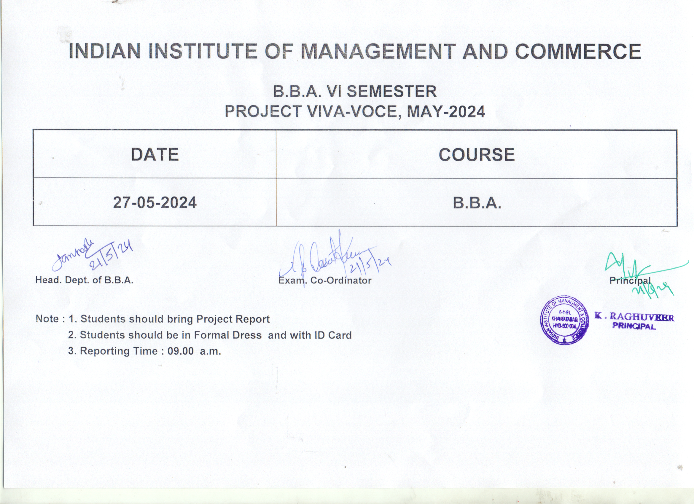 B.B.A. Project Viva-Voce Timetable(27-May-2024)