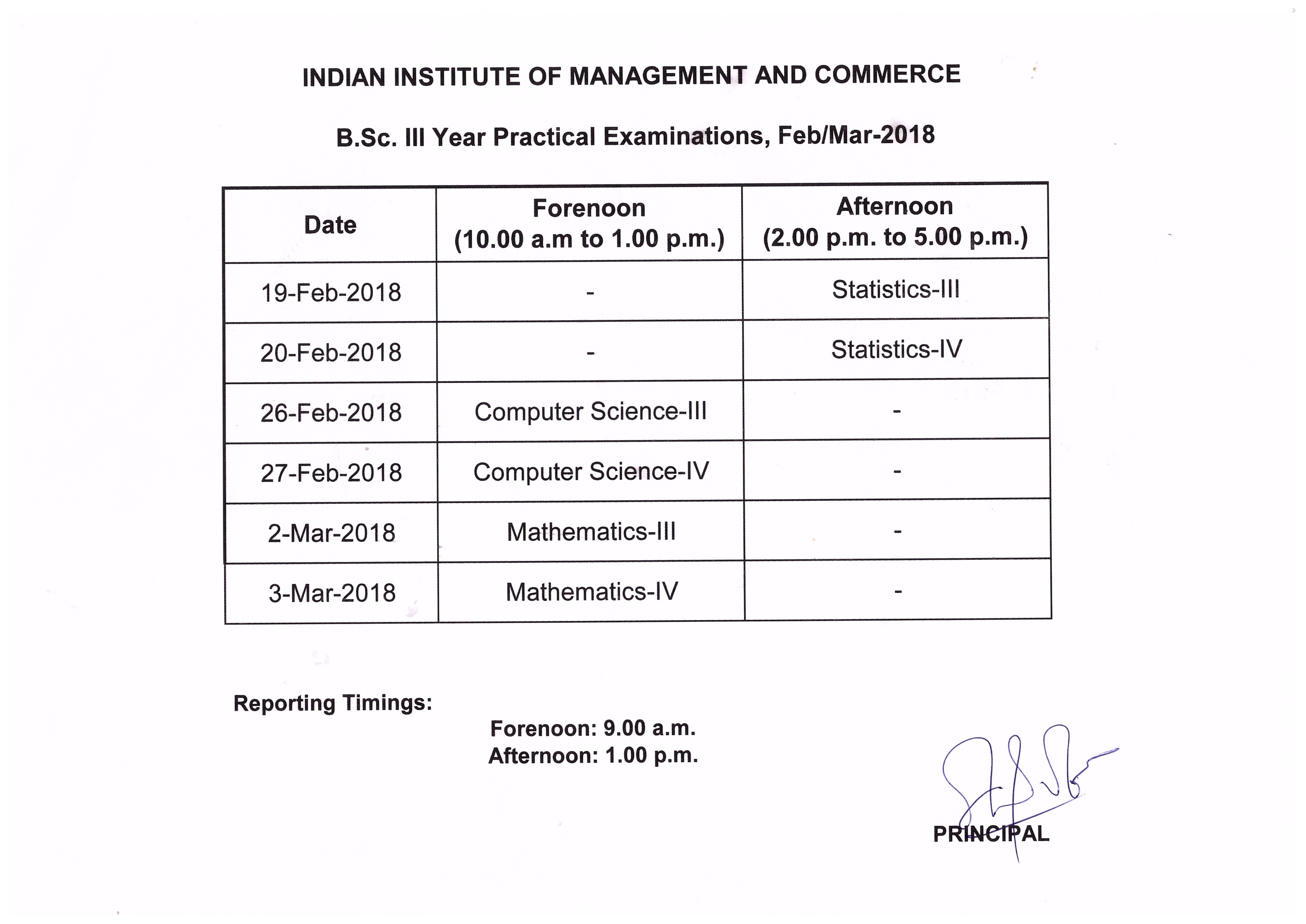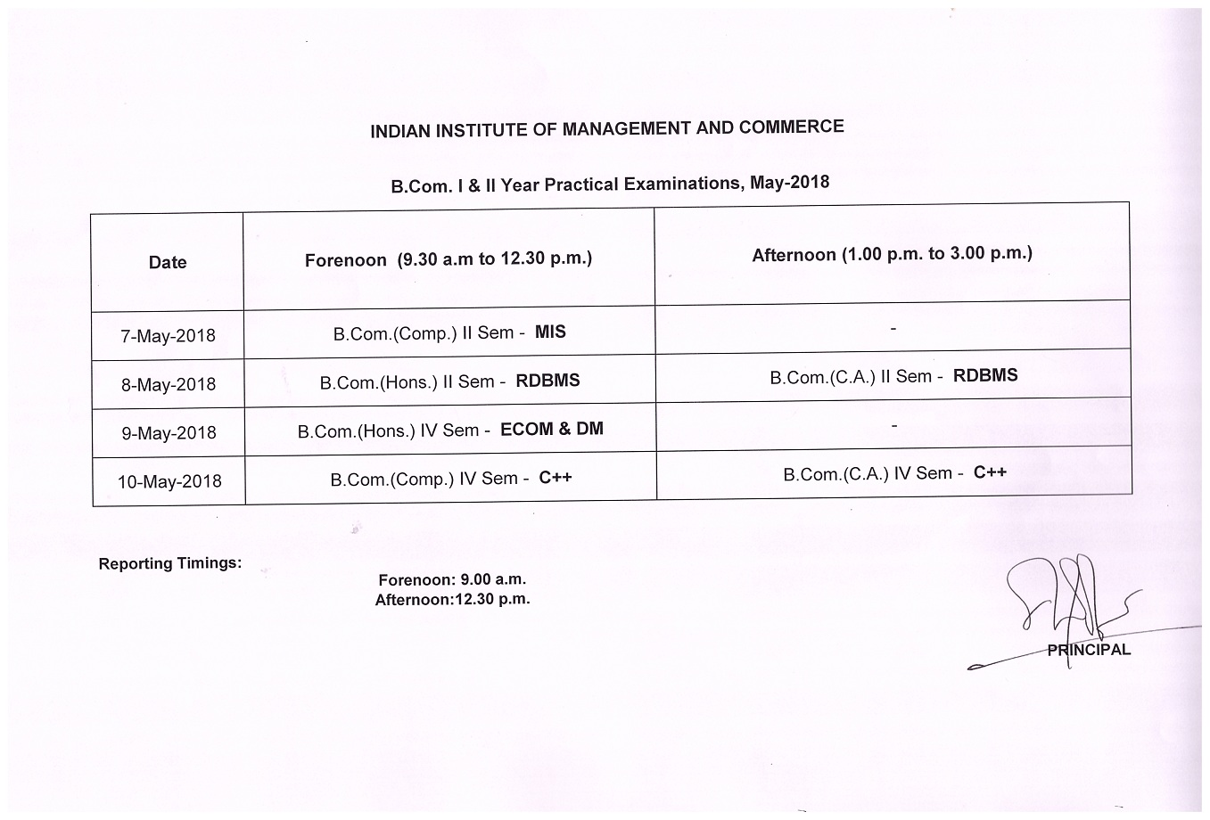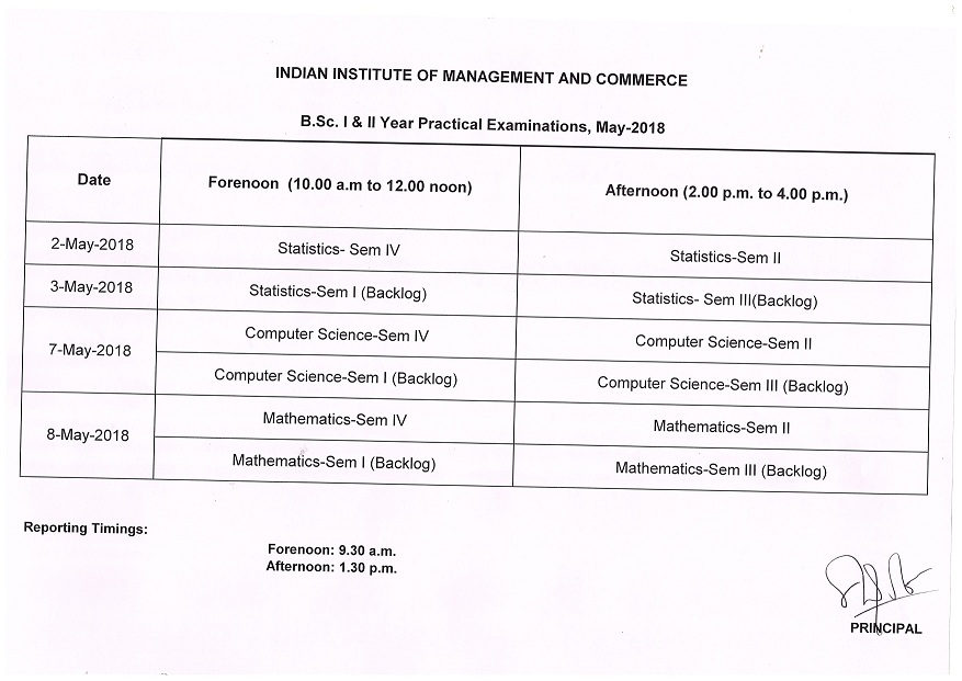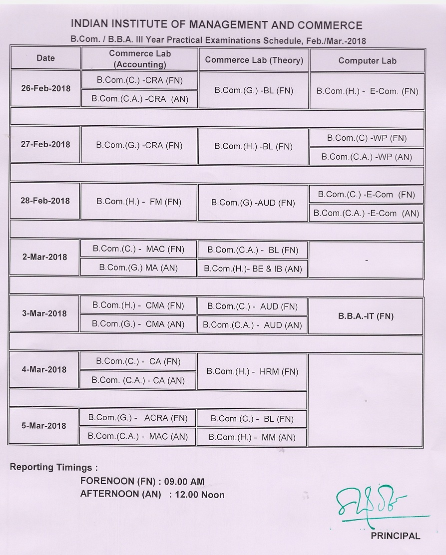 B.Com Practical Timetable - May 2018