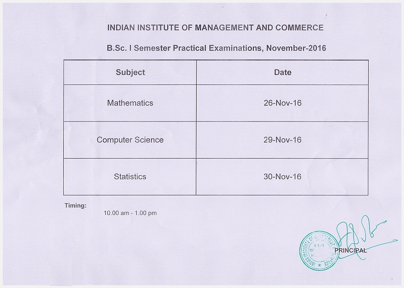 BSc Sem I Practical Time-Table 2016