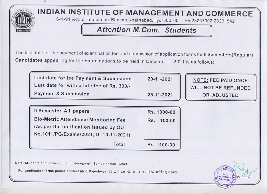M.COM. II SEM. Exam Fee Notice(Last Date:20-Nov-2021)
