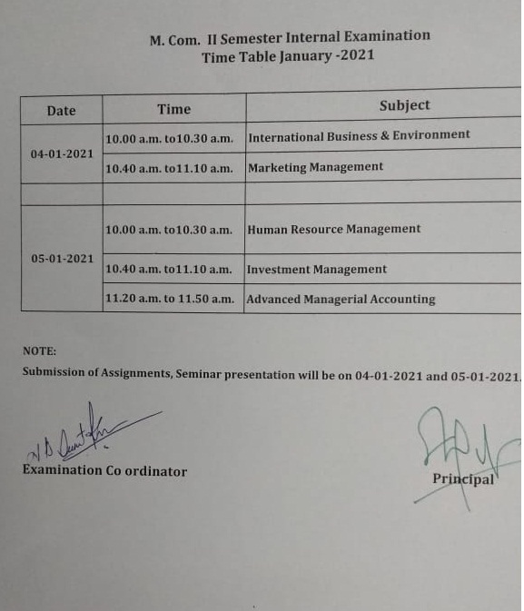 M.Com. II Sem Internal TimeTable - Jan 2021(4-Jan-2021 & 5-Jan-2021)