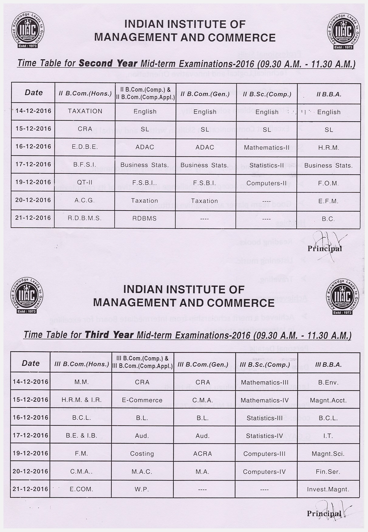 Mid-Term Examination Time-Table 2016