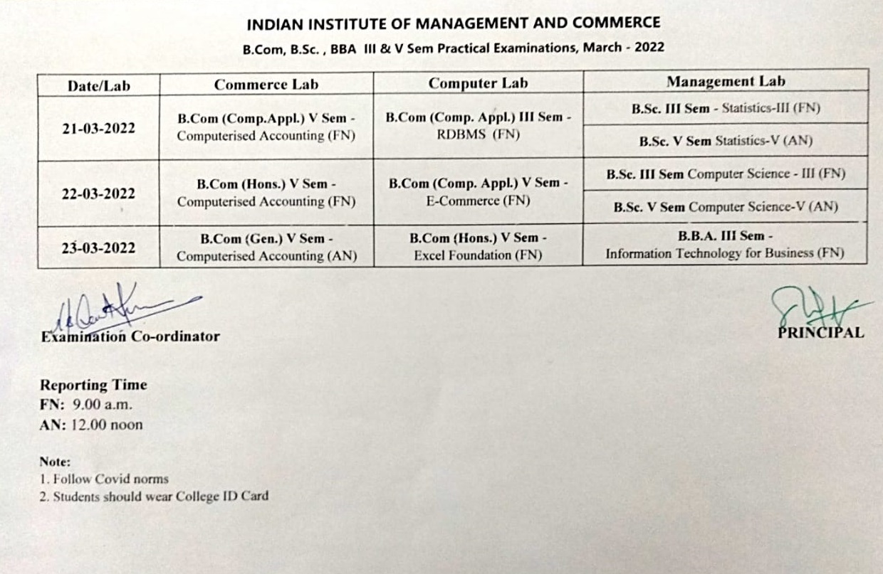 Practical Examinations TimeTable(III & V Sem.) - Jan 2021