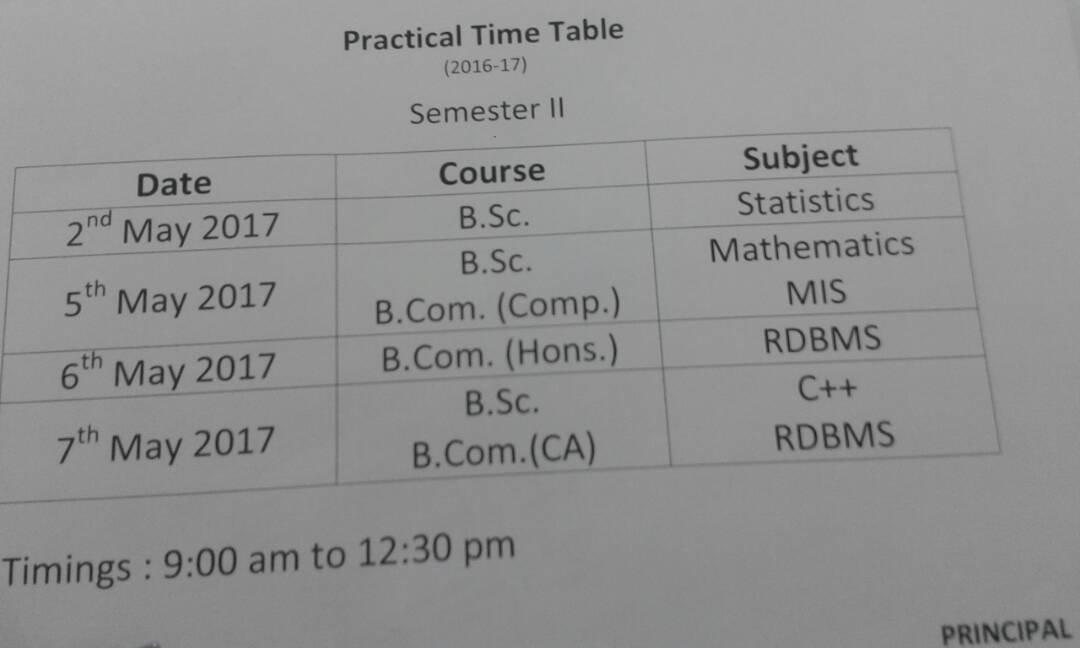 Practical TimeTable(Semester-II)-2017