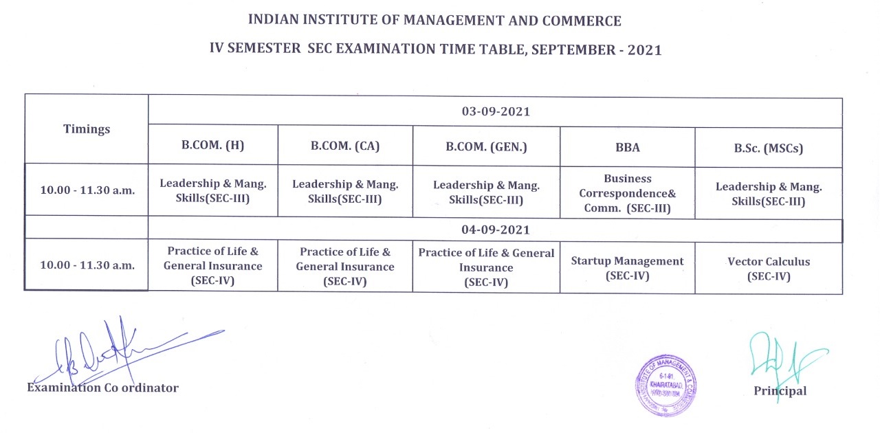 UG IV Sem. SEC Exam Timetable(3-Sep-2021 & 4-Sep-2021)