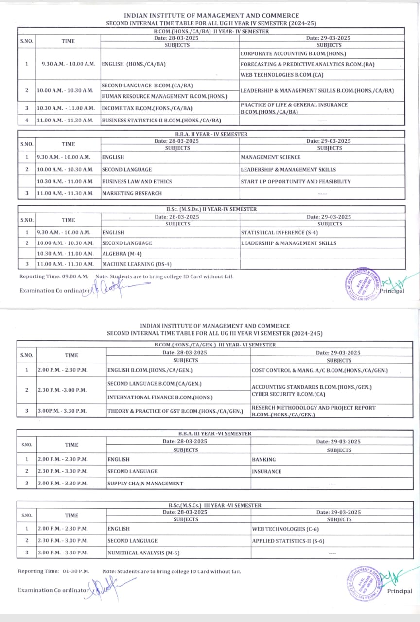 UG Second Internal Timetable-IV & VI Sem.(28-Mar-2025 & 29-Mar-2025)