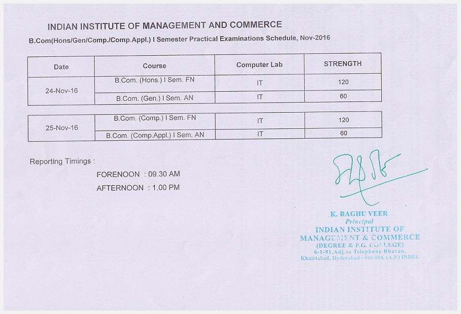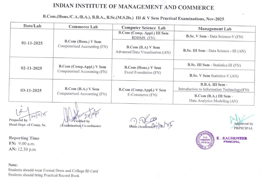 Practical TimeTable - I Sem , III Sem & V Sem - Nov 2018
