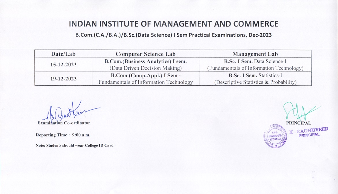 UG I Sem. Practical timetable (15-Dec-2023 & 19-Dec-2023)