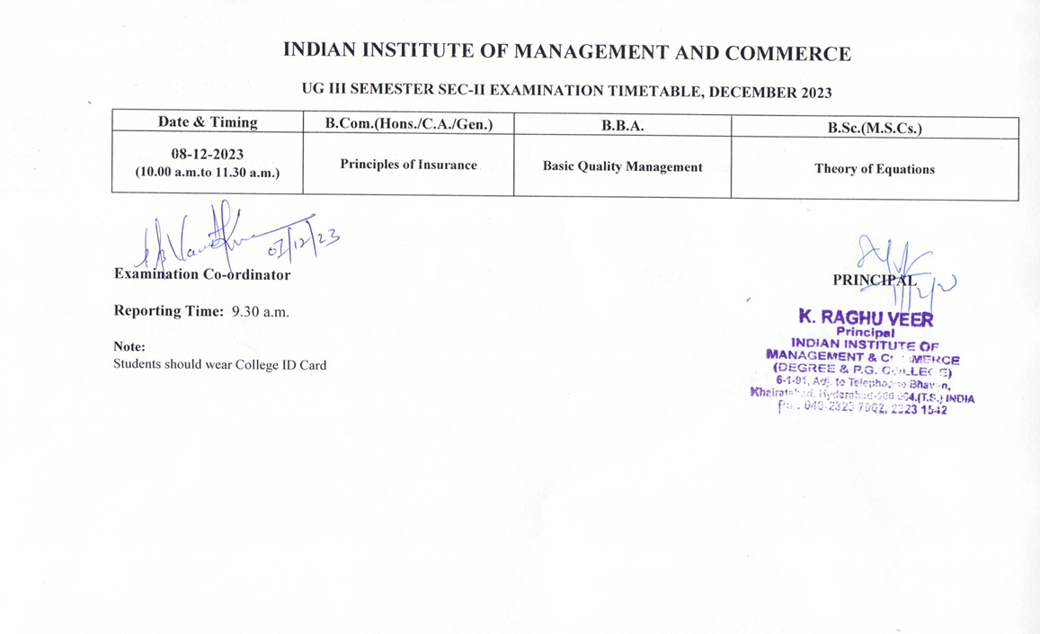 UG III SEM. SEC-II TIMETABLE (8-Dec-2023)