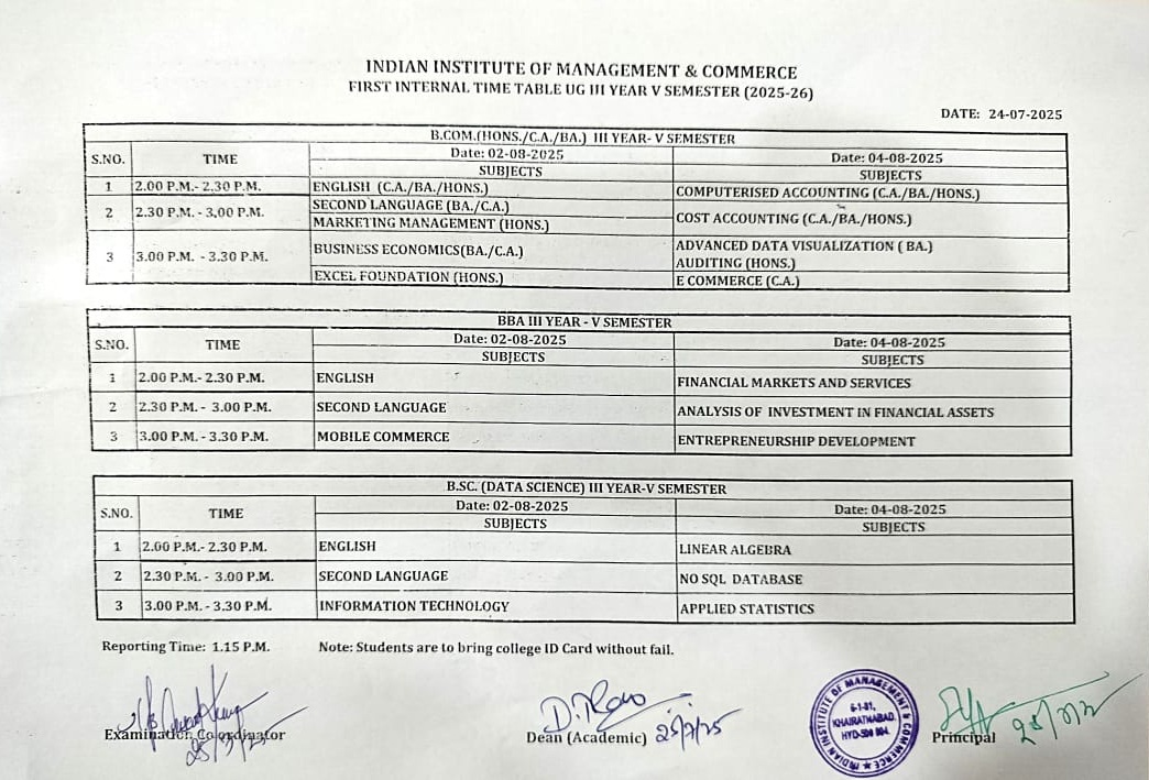 UG First Internal Timetable-III & V Sem.(23-Aug-2024 & 24-Aug-2024)