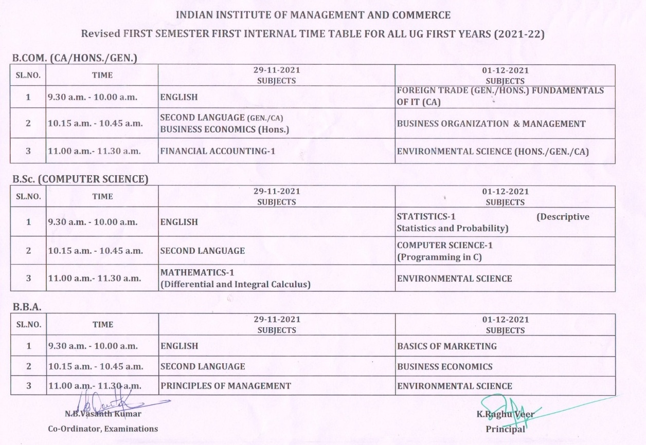 UG I Sem.-First Internal Timetable(29-Nov-2021 & 01-Dec-2021)