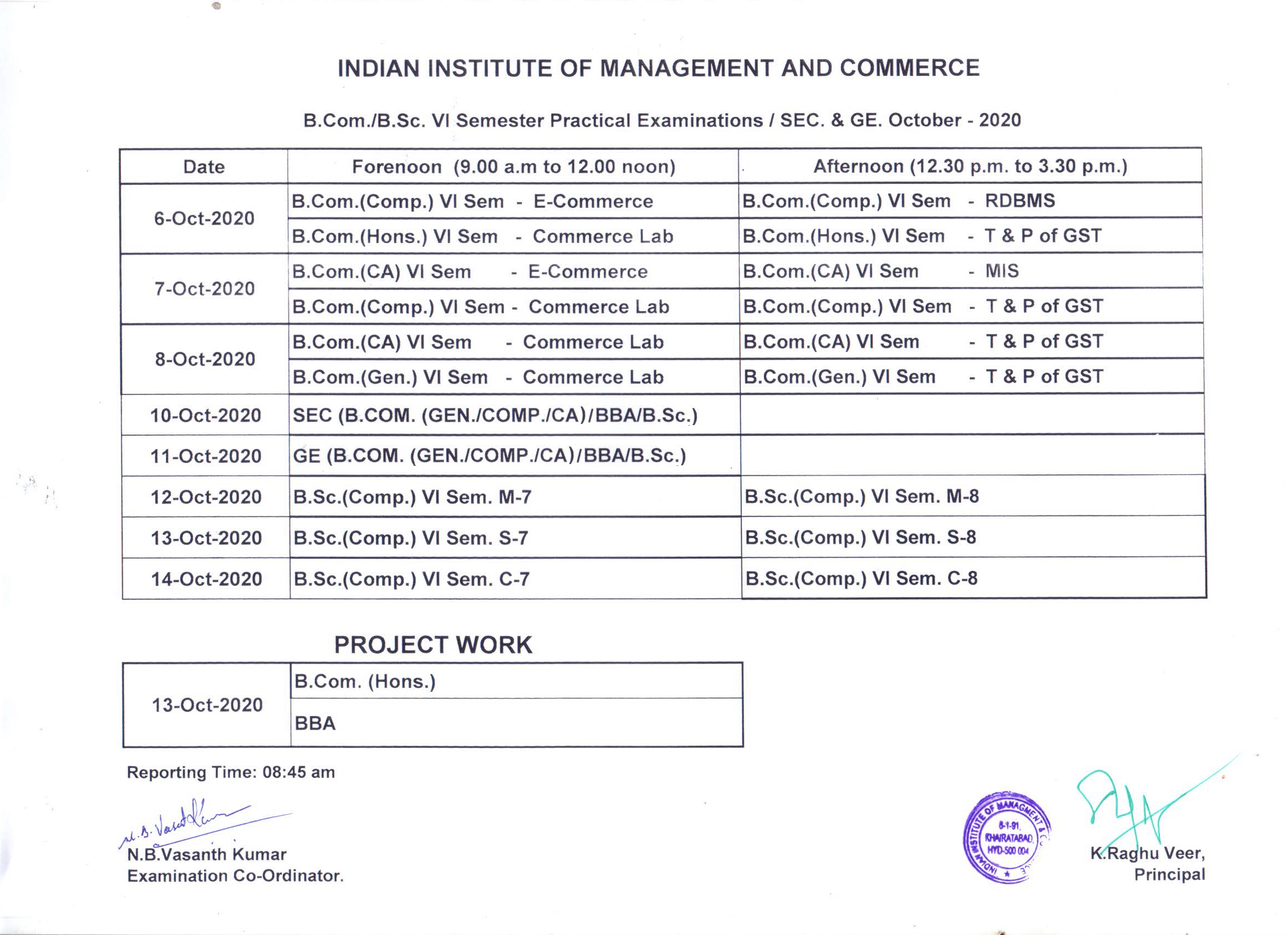 UG VI Sem. Practical Timetable-Oct 2020