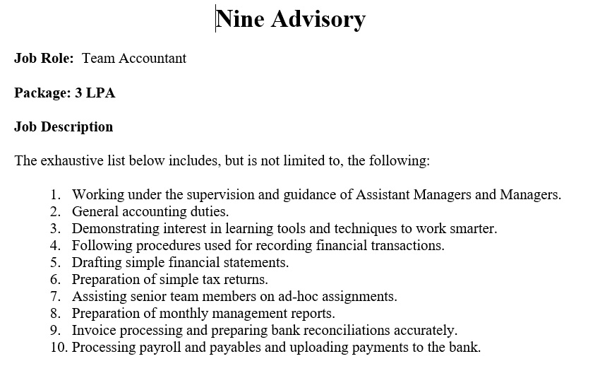 Job Title: Team Accountant