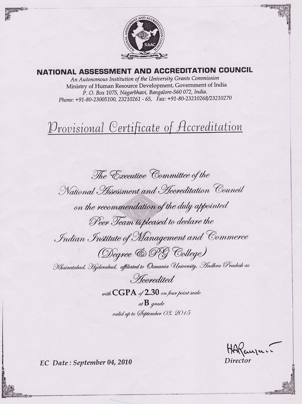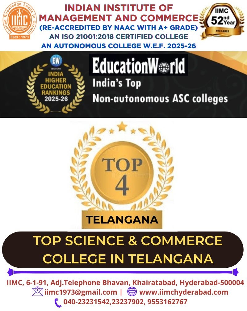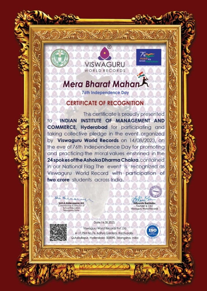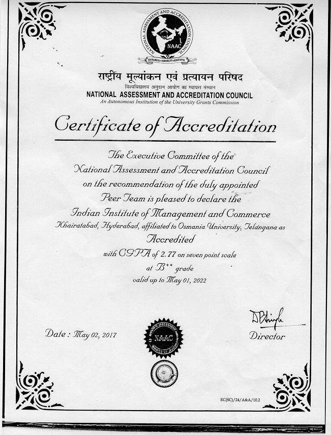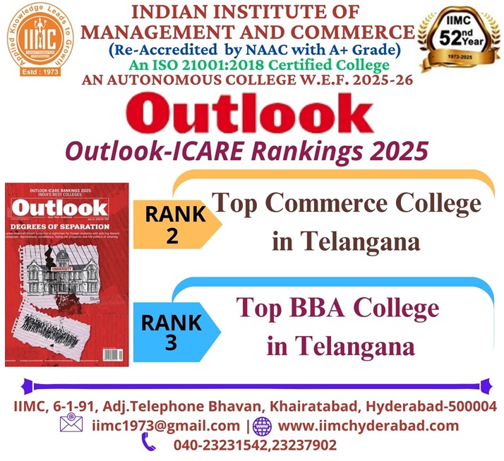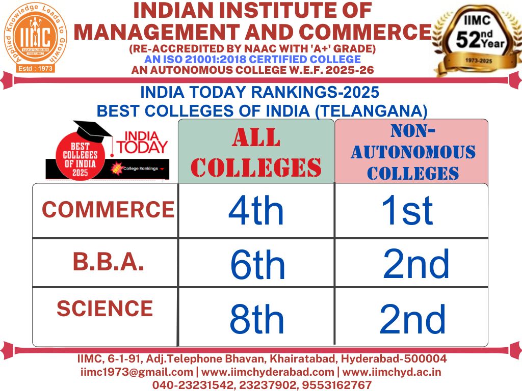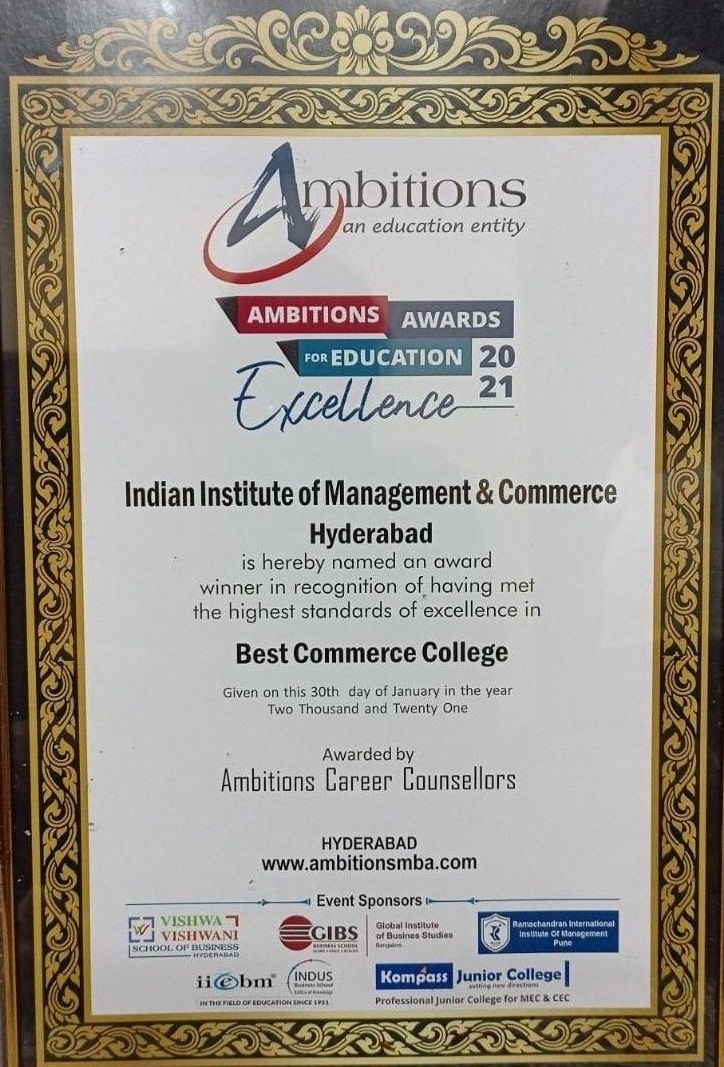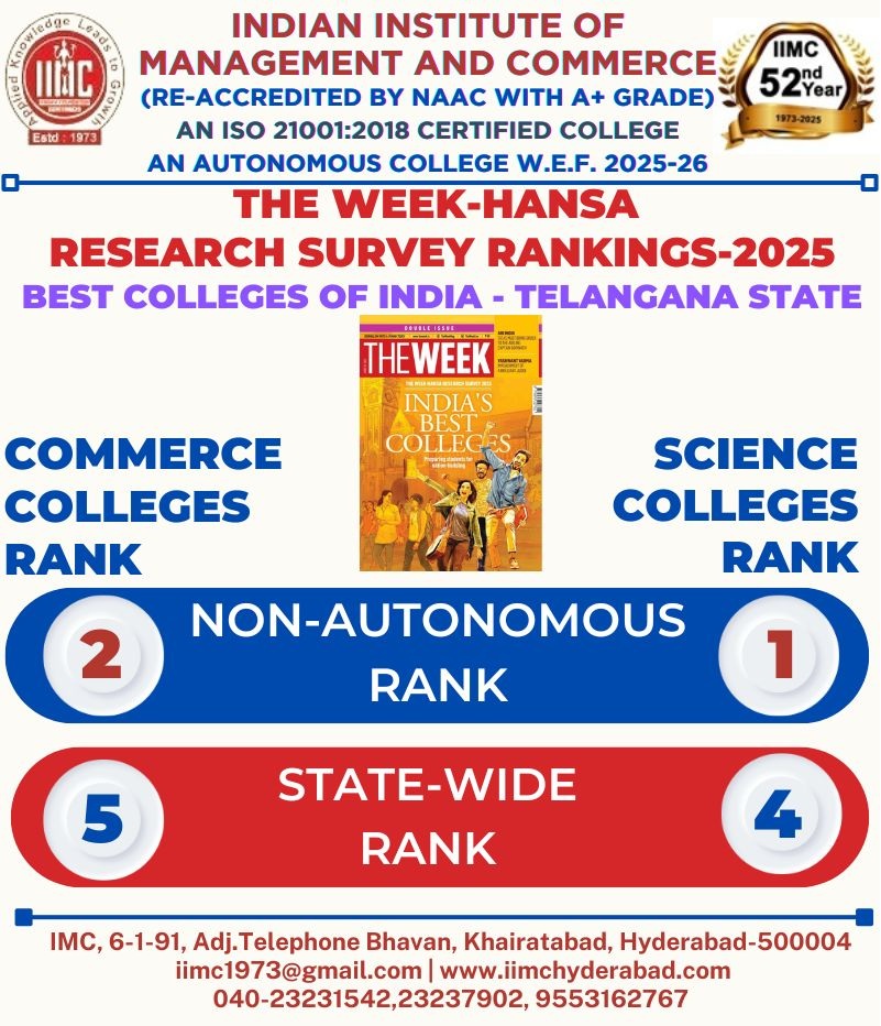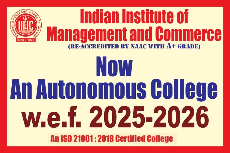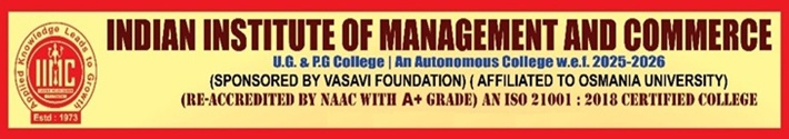 The Indian Institute of Management and Commerce(IIMC) established five decades ago(year 1973) has to its credit some outstanding achievements in the field of Commerce Education in general and Honours course in particular at the Degree level. Eminent social workers and philanthropists and Educationalists like Sri Kothuru Seethaiah Gupta, Sri Challa Som Raj Ram, Sri C.E. Gupta, Sri Dundoo Balanarasaiah, Sri Narayana Chetty IAS(Retd.), Late Sri Veloor Lingaiah Gupta gathered together and laid solid foundation in starting this premier Institution. Members of Vysya Community in particular and admirers of Higher Education in general are greatly beholden to the Founders.