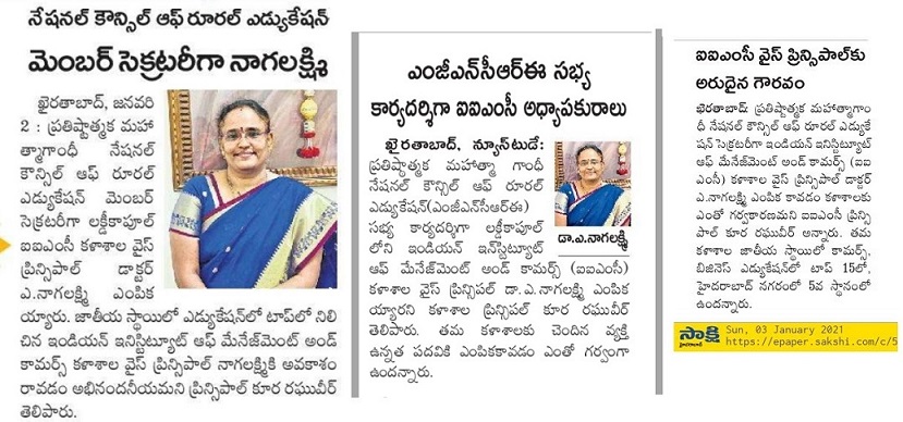 Dr.Nagalakshmi, Vice-Principal(Academic) has been selected as Member Secretary, Mahatma Gandhi National Council of Rural Education, Ministry of Education, Govt. of India.