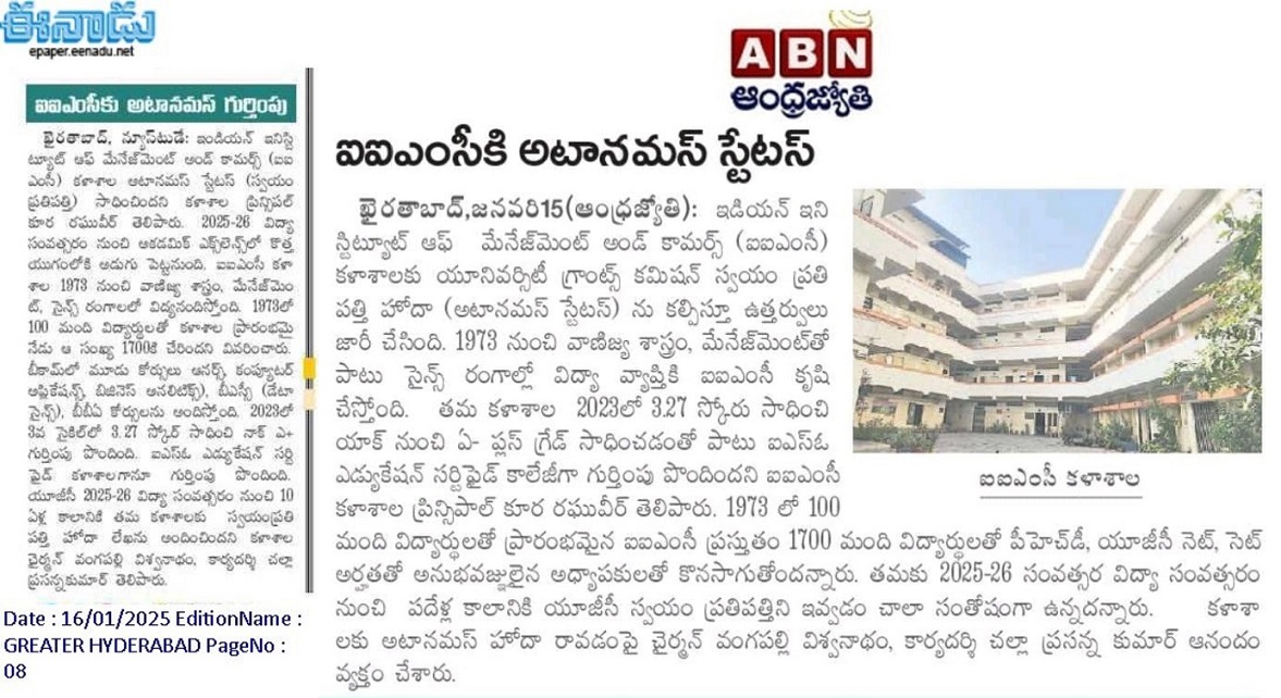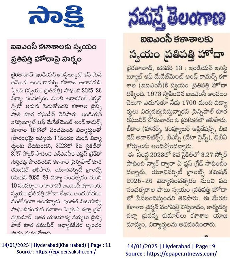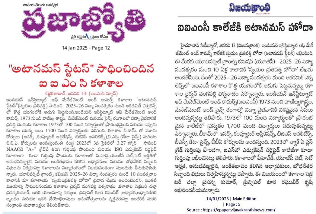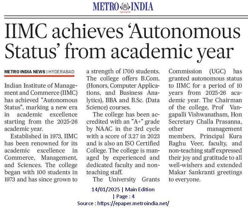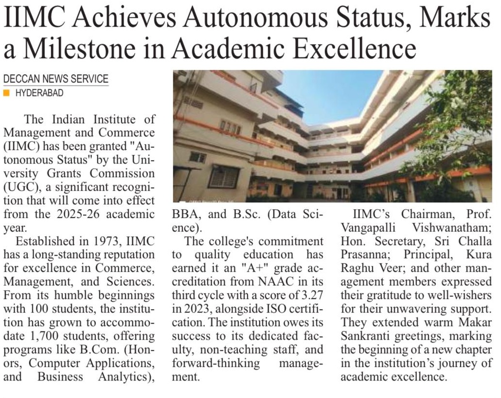 IIMC achieves Autonomous Status w.e.f. 2025-26(14-Jan-2025 & 15-Jan-2025)