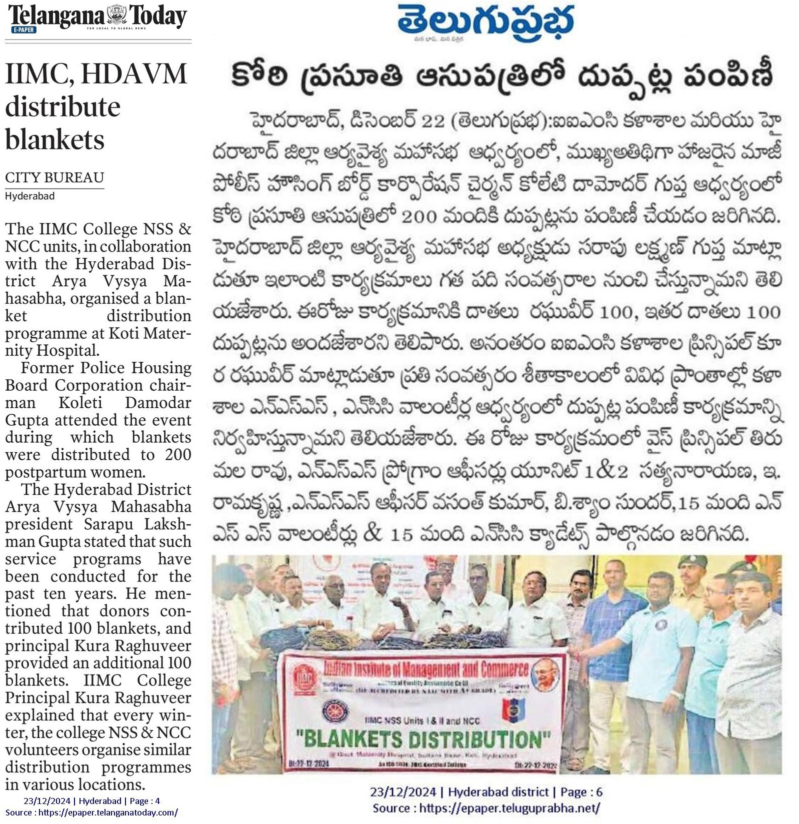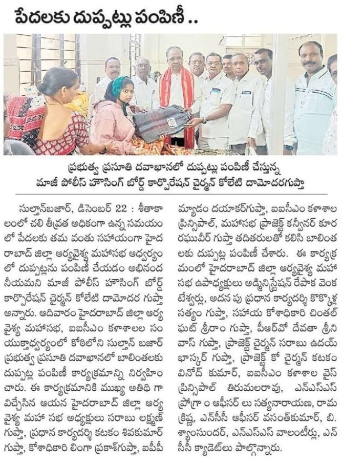 Blankets Distribution @ Koti Maternity Hospital (22-Dec-2024)