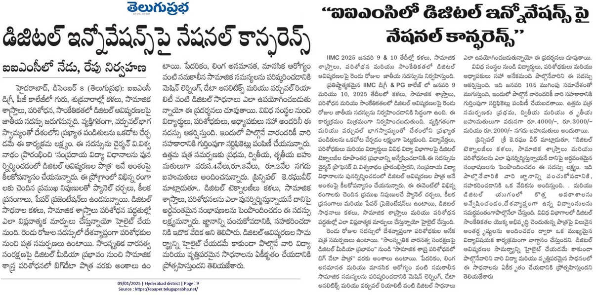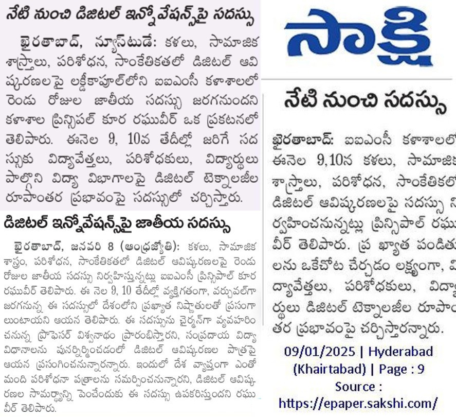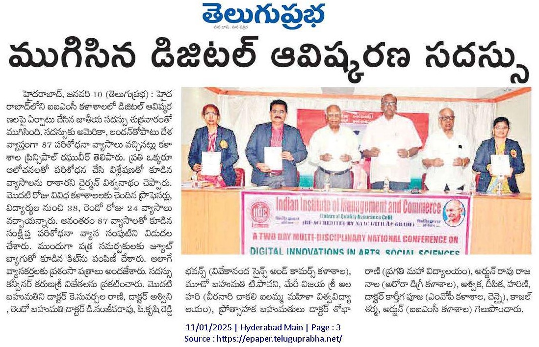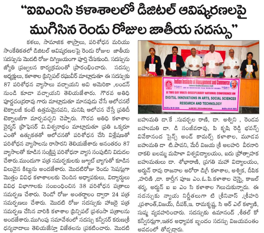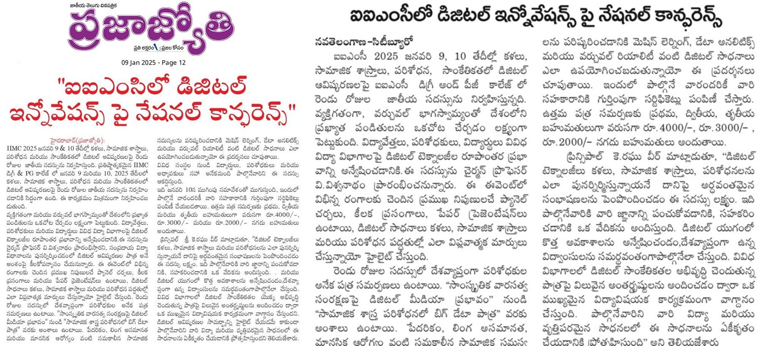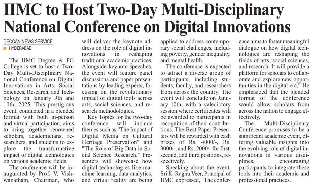 A TWO DAY MULTI-DISCIPLINARY NATIONAL CONFERENCE ON Digital Innovations in Arts, Social Sciences,Research and Technology (9-Jan-2025 & 10-Jan-2025)