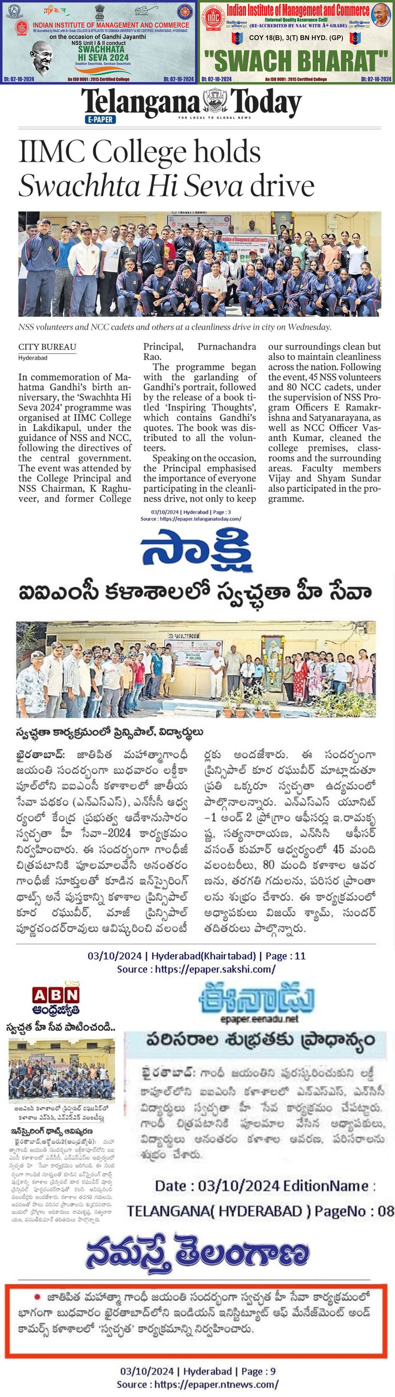 Gandhi Jayanthi-Swachhata Hi Seva 2024 & Swach Bharat(2-Oct-2024)