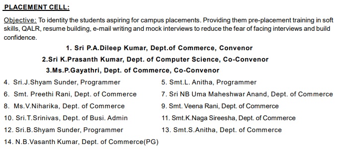 The very fact that the college established a Placement Cell for the purposes of recruitment and employment goes to prove our sincere resolve to improve academic standards aimed at providing the right kind of career incentives.