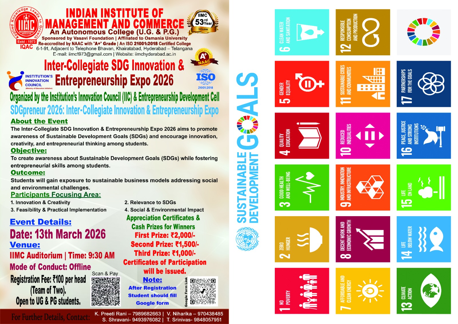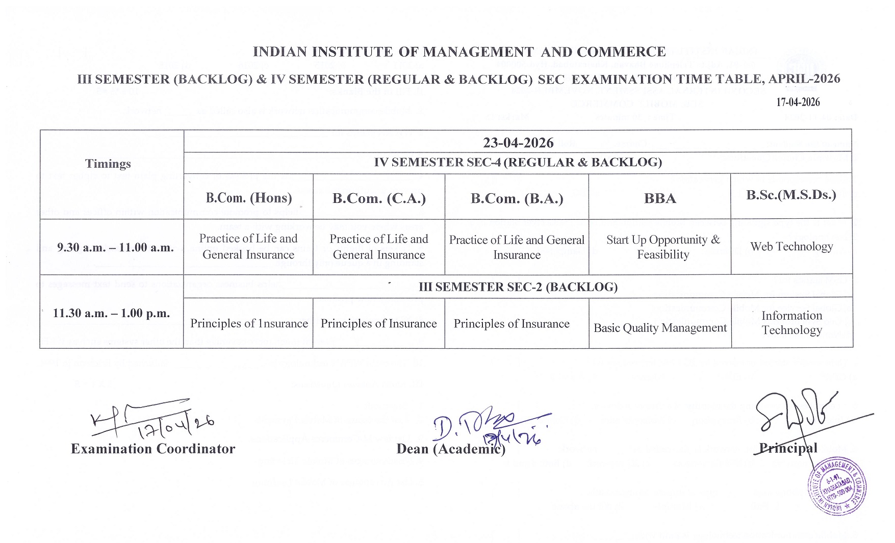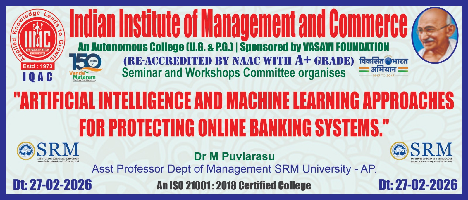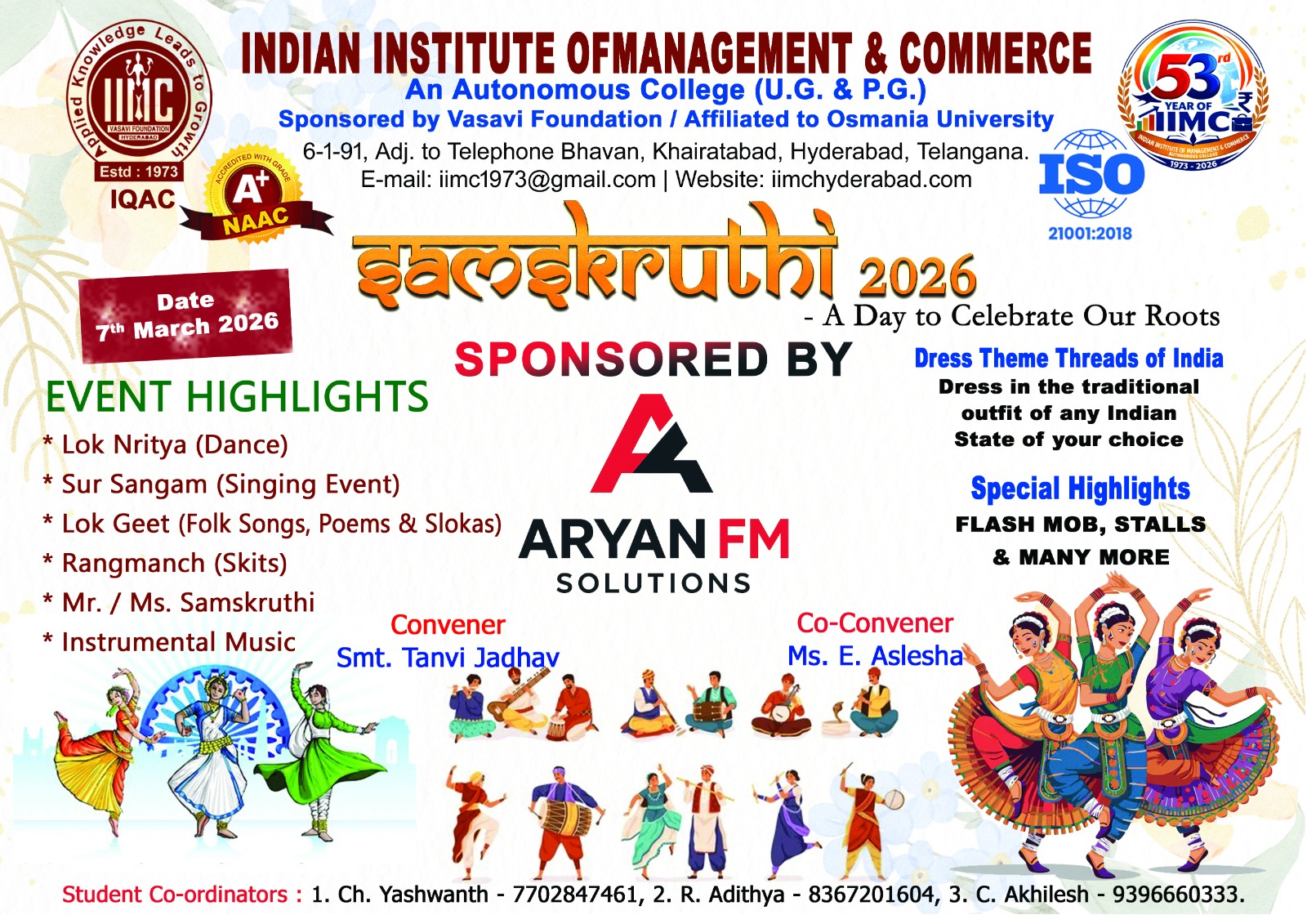 The Indian Institute of Management and Commerce(IIMC) established five decades ago(year 1973) has to its credit some outstanding achievements in the field of Commerce Education in general and Honours course in particular at the Degree level. Eminent social workers and philanthropists and Educationalists like Sri Kothuru Seethaiah Gupta, Sri Challa Som Raj Ram, Sri C.E. Gupta, Sri Dundoo Balanarasaiah, Sri Narayana Chetty IAS(Retd.), Late Sri Veloor Lingaiah Gupta gathered together and laid solid foundation in starting this premier Institution. Members of Vysya Community in particular and admirers of Higher Education in general are greatly beholden to the Founders.